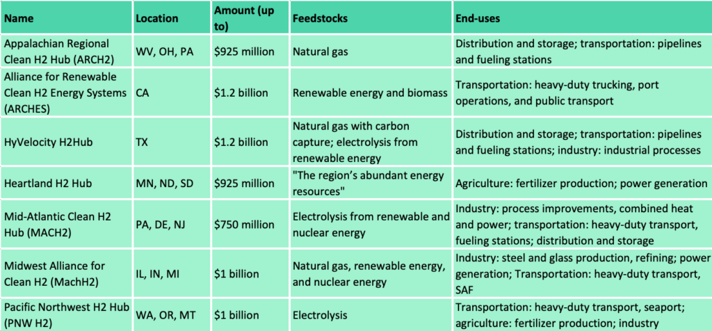 The U.S. Department of Energy (DOE) on Friday announced its selection of 7 much anticipated regional hydrogen hubs (H2Hubs), totalling $7 billion in awards. These hubs are located in various parts of the U.S.—the Appalachia, California, the Gulf Coast, the Northern Great Plains, the Mid-Atlantic, the Midwest, and the Pacific Northwest. Collectively, these hubs are expected to produce a collective three million metric tons of hydrogen annually—30% of DOE’s 10 million metric tons/year goal by 2030.