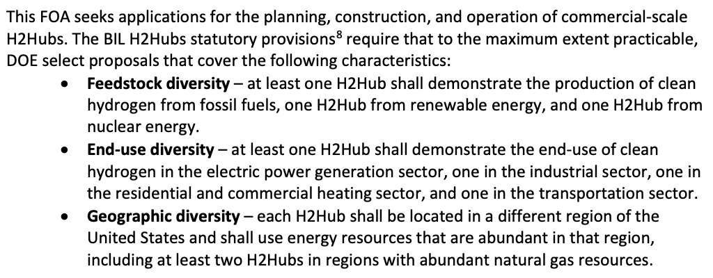 Recall that the funding opportunity announcement (DE-FOA-0002779) has three selection criteria focused on diversity: feedstock diversity, end-use diversity, and geographic diversity (see excerpt above). At first glance, the selected H2Hubs have covered these three fronts very well. But is that the whole story?