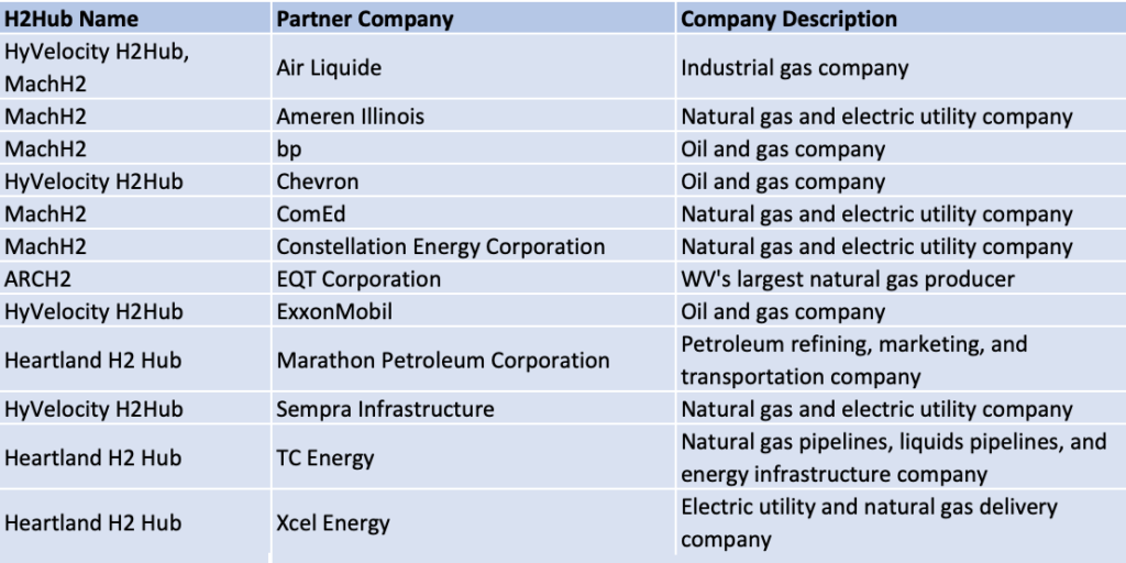 Indeed, industry partners backing these 4 hubs include major oil and gas companies. See the table below.